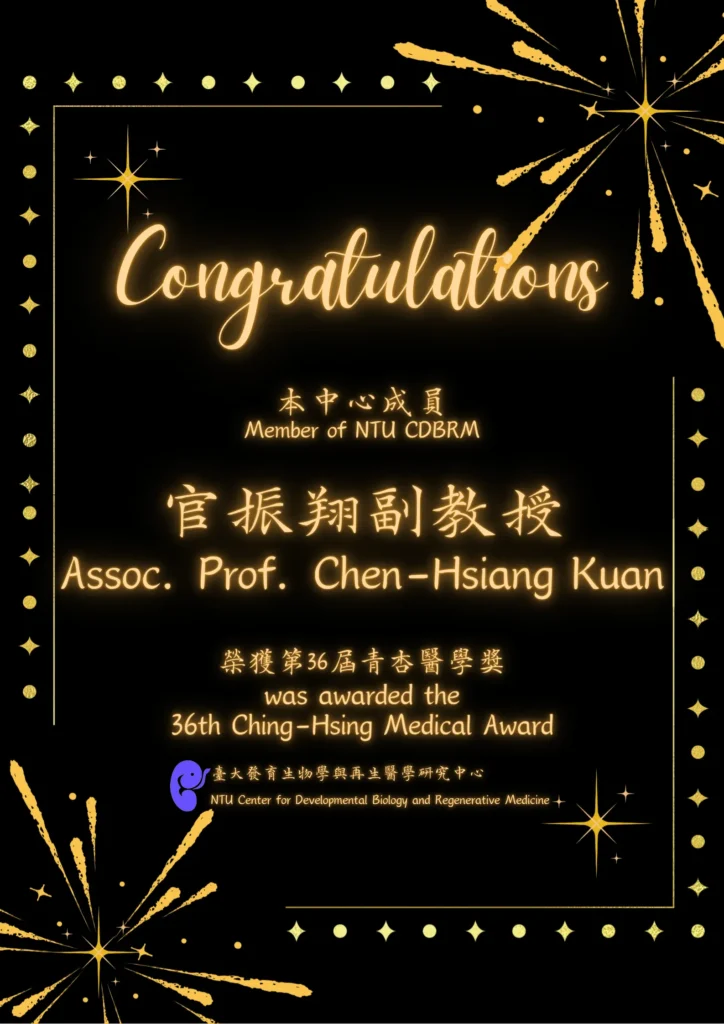 恭賀本中心官振翔副教授榮獲財團法人青杏醫學文教基金會第36屆青杏醫學獎